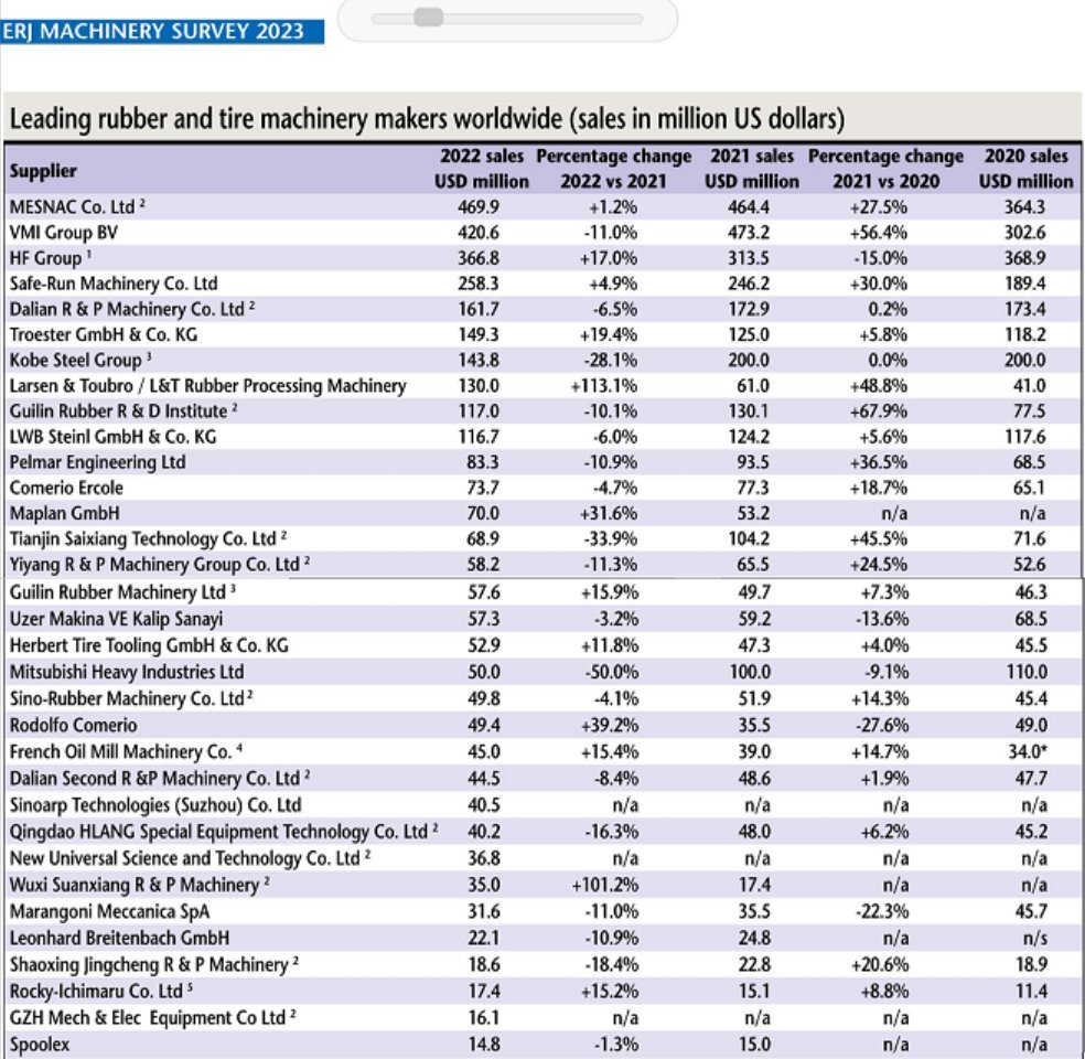 Mesnac's Turnover in Rubber Machinery field Topped the World Again in 2022
